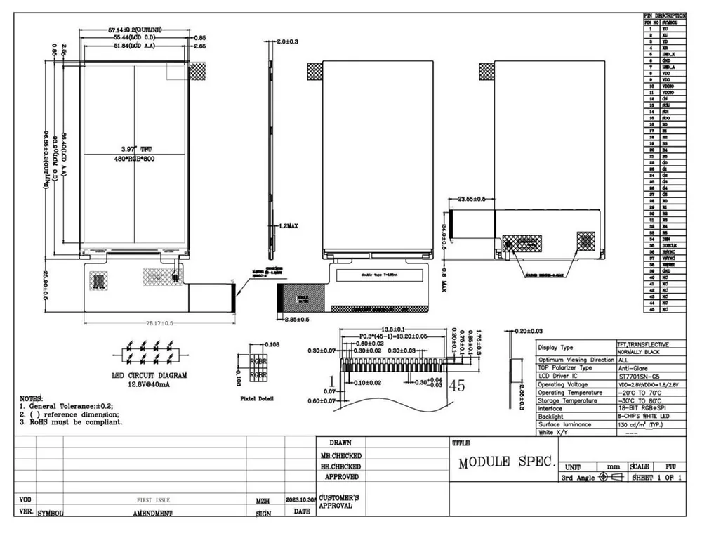 टीएफटी एलसीडी एक प्रकार का लिक्विड क्रिस्टल डिस्प्ले है जो छवि की गुणवत्ता को बढ़ाने के लिए पतली-फिल्म ट्रांजिस्टर तकनीक का उपयोग करता है, और इसके रोजमर्रा की जिंदगी में कई अनुप्रयोग हैं। चीन में एक पेशेवर TFT मॉड्यूल निर्माता और आपूर्तिकर्ता के रूप में, क्या Victronix 3.97 इंच 480 × 800 ट्रांसफ्लेक्टिव IPS TFT-LCD अन्य निर्माताओं से अलग बनाता है? प्रारंभ में, यह 130 सीडी/एम m, और विस्तृत 85 ° देखने के कोण (सभी दिशाओं) की एक विशिष्ट चमक प्रदान करता है, जो विभिन्न कोणों से उत्कृष्ट पठनीयता सुनिश्चित करता है। दूसरे, यह एक बैकलाइट यूनिट को एकीकृत करता है जो 8-डाई व्हाइट एलईडी का उपयोग करता है, जो 30,000 से 50,000 घंटे (50% प्रारंभिक चमक) के विशिष्ट जीवनकाल के साथ, सभी प्रकाश व्यवस्था की स्थिति में स्पष्ट दृश्यता सुनिश्चित करता है। इसके अलावा, यह 18-बिट RGB समानांतर + 3-लाइन SPI सीरियल और ST7701SN-G5 नियंत्रक का समर्थन करता है। इसके अलावा, यह कठोर पर्यावरणीय परीक्षण पास करता है, जिसमें उच्च/निम्न अस्थायी संचालन/भंडारण, आर्द्रता, थर्मल शॉक, और ईएसडी संरक्षण (संपर्क: 4KV, वायु: 8KV) शामिल हैं, यह सुनिश्चित करना कि यह एक विस्तारित तापमान सीमा (-20 ° C से +70 ° C) में मूल रूप से संचालित हो सकता है।