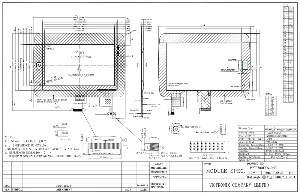 Victronix एक पेशेवर TFT मॉड्यूल निर्माता और चीन में स्थित आपूर्तिकर्ता है। इस क्षेत्र में 18 साल के अनुभव के साथ, हमने विभिन्न प्रकार के मॉडल विकसित किए हैं। हमारे मानक उत्पादों के अलावा, हम अपने ग्राहकों की विशिष्ट आवश्यकताओं को पूरा करने के लिए अनुकूलित सेवाएं भी प्रदान करते हैं। यह विक्ट्रोनिक्स 7 इंच 1024 × 600 सामान्य रूप से सफेद टीएफटी एलसीडी मॉड्यूल एक उच्च गुणवत्ता वाला 7 इंच टीएफटी एलसीडी मॉड्यूल है जो औद्योगिक अनुप्रयोगों की मांग के लिए इंजीनियर है। 1024 × 600 पिक्सल (WSVGA) के मूल संकल्प की विशेषता, यह विस्तृत डेटा प्रस्तुति, उपयोगकर्ता इंटरफेस और निगरानी कार्यों के लिए आवश्यक तेज, स्पष्ट दृश्य प्रदान करता है।